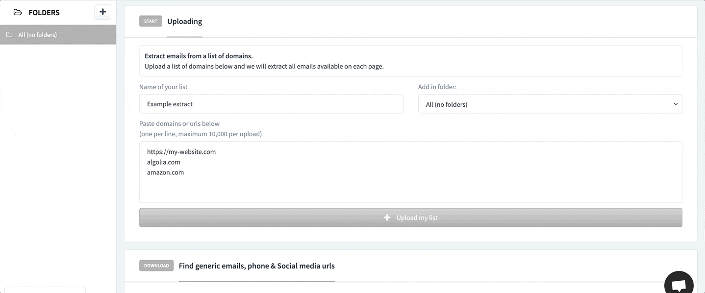 Remplissez instantanément les données manquantes des prospects.- Téléchargez une liste de domaines et recevez les e-mails
